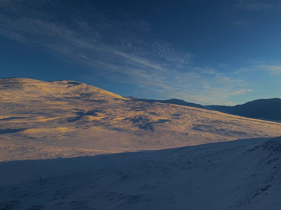 Ensimmäiseen laskupäivään herättiin aurinkoisin fiiliksin. Sää oli mitä täydellisin, ja oli aika suunnata rinteeseen. Olimme odottaneet erityisesti Kobåsetin offareita, mutta uutta lunta ei ollut satanut sitten joulukuun jälkeen. Siitä huolimatta rinteet olivat hyvässä kunnossa ja maisemat puhuivat puolestaan.